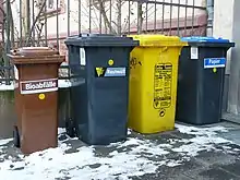 En 2008, une nouvelle directive — la directive 2008/98/CE du 19 novembre 2008[31]. — qui insiste sur la réduction du gaspillage alimentaire et des pollutions, imposant le tri à la source, avec valorisation organique des biodéchets des « gros producteurs »[32]. Elle rend obligatoire avant 2015 de collecter séparément les déchets avec notamment l’obligation d’instaurer la collecte séparée au moins pour le papier, le métal, le plastique et le verre. Les États doivent mettre en place une collecte séparée des biodéchets, des déchets dangereux produits par les ménages et des déchets textiles[33].