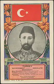 L’association illégale des « Jeunes-Turcs » (Comité Union et Progrès, CUP) se développe dans les provinces, surtout dans les garnisons de Macédoine ottomane, remettant en cause l'autorité d'Abdülhamid : celui-ci envoie 18 000 hommes pour dompter cette mutinerie mais ils se joignirent aux rebelles. Abdülhamid, afin d’enrayer le mouvement, annonce alors en juillet 1908 la convocation du Parlement et la remise en vigueur de la constitution de 1876 : c’est la fin de l’ère du despotisme hamidien.