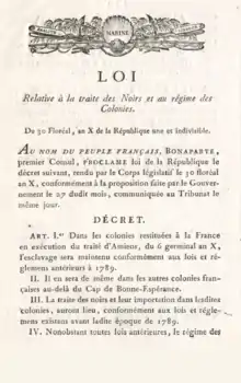 - Rétablissement de l'esclavage par Napoléon Bonaparte