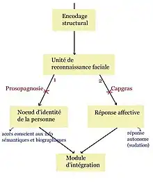 Dans les années 1990, Ellis et Young[6] ont proposé un modèle de reconnaissance des visages suivant deux voies parallèles :