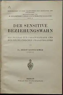 - (de) Ernst Kretschmer, Der Sensitive Beziehungswahn: Ein Beitrag zur Paranoiafrage und zur Psychiatrischen Charakterlehre, Springer, Berlin, 1918, 1116 p.