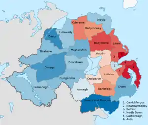- Lire l'article en anglais : Reform of local government in Northern Ireland pour plus de détails