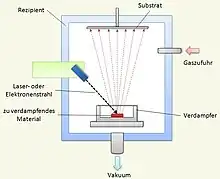 - Évaporation par faisceau d'électron en phase vapeur (angl. electron beam evaporation)
