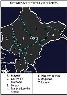 - (en)/(es) Cet article est partiellement ou en totalité issu des articles intitulés en anglais « Department of Loreto » (voir la liste des auteurs) et en espagnol « Departamento de Loreto » (voir la liste des auteurs).