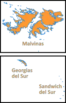 Le département des îles de l'Atlantique sud (en espagnol : departamento Islas del Atlántico Sur) est l'une des quatre divisions territoriales de la province de Terre de Feu, Antarctique et Îles de l'Atlantique Sud au sud de l'Argentine. Il est composé des îles Malouines et des archipels connus sous le nom d'Antilles australes[2]. Tout le territoire du département — et ses mers adjacentes — sont l'objet d'un conflit de souveraineté entre l'Argentine et le Royaume-Uni.