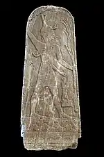 ![]() Stèle de calcaire blanc, figurant Baal, dieu sémitique ou cananéen de l'orage et de la pluie. Fouilles Claude F. A. Schaeffer, 1930. Musée du Louvre, base Collections Aile Sully, rez-de-chaussée : Levant - Syrie côtière, Ougarit et Byblos des origines à l'âge du fer, salle 301 |