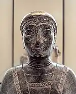 Statuette d'homme barbu, nu, représentant peut-être le roi-prêtre. Hauteur : 30,5 cm Musée du Louvre, base Collections Aile Richelieu, rez-de-chaussée, salle 236 |