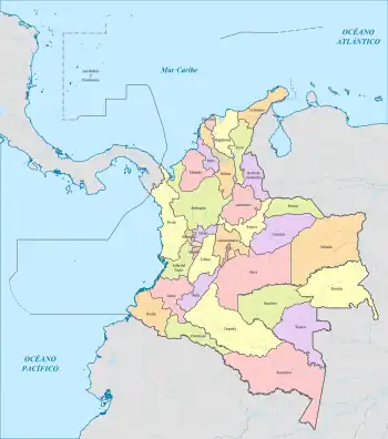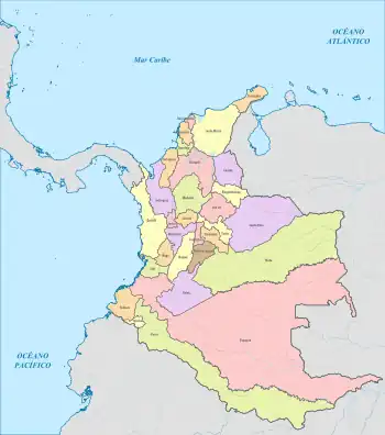 L'organisation territoriale colombienne actuelle est issue de la constitution de 1886. Auparavant, la Colombie (alors les États-Unis de Colombie) était divisée en États souverains : Antioquia, Bolívar, Boyacá, Cauca, Cundinamarca, Magdalena, Panama, Santander et Tolima.