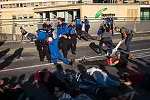 Le , Action non-violente COP21, Greenpeace et Les Amis de la Terre ont organisé une des plus grandes actions de désobéissance citoyenne connues en France, regroupant un total de 2 030 activistes. Durant cette journée de mobilisation, quatre tours du quartier des affaires La Défense à Paris ont été bloquées. Parmi elles, il y avait le siège de Total, de EDF, de la Société Générale et du ministère de la transition écologique et solidaire. Les associations organisatrices pointent du doigt ce qu'elles appellent « La République des pollueurs », et demandent au gouvernement d'Emmanuel Macron un changement de politique radical afin de lutter efficacement contre le réchauffement climatique[17],[18],[19].