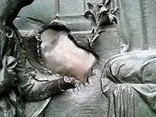 Sur la façade les reliefs illustrent (en partant de la base externe gauche) :