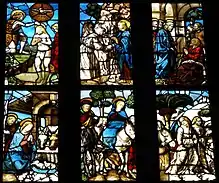 Le vitrail est une œuvre de Giovanni Battista Bertini (1849) et représente l’Histoire de saint Gervais et saint Protais[3].
