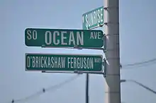Le quartier d'origine de Ferguson, Freeport, a baptisé secondairement la rue South Ocean Avenue en son nom en .