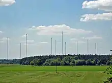 DCF77 est un système allemand de transmission de l'heure légale par ondes radio, sur une large zone de couverture. Il a été mis en service le par la Physikalisch-Technische Bundesanstalt (PTB), à l'initiative du Gouvernement allemand. Son émetteur est situé à Mainflingen, près de Francfort-sur-le-Main. Il possède une horloge atomique au césium et donne donc le temps atomique avec une incertitude d'une seconde en un million d'années. Les deux antennes sont soutenues par des câbles horizontaux, eux-mêmes maintenus en hauteur par plusieurs pylônes, à environ 200 m de hauteur.