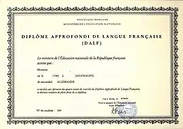 Pour les élèves, étudiants et autres apprenants étrangers non francophones, le ministère français de l'éducation nationale a créé par arrêté du le DELF, Diplôme d'études en langue française et le DALF, Diplôme approfondi de langue française, sous forme de diplômes constitués d'unités capitalisables. Le Centre international d'études pédagogiques (CIEP) de Sèvres administre ces diplômes pour l'étranger et chaque académie en France. Un arrêté du a scindé l'ancien diplôme élémentaire en deux diplômes d'études en langue française (premier degré composé de quatre unités, second degré de deux unités).