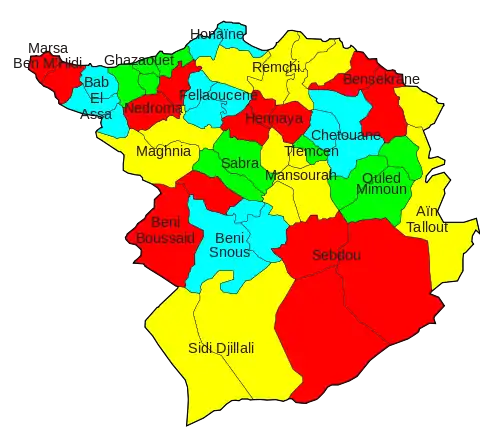 | Remchi | 5 | Aïn Youcef • Beni Ouarsous • El Fehoul • Remchi • Sebaa Chioukh |