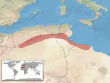 Cette espèce se rencontre dans le sud du Maroc, en Algérie, en Tunisie et en Libye[1].