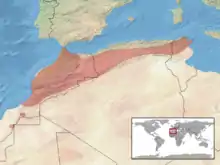 Cette espèce se rencontre au Sahara occidental, au Maroc, dans le nord de l'Algérie et en Tunisie[1].