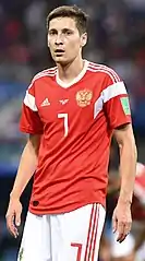En septembre 2018, il signe sa première passe décisive en sélection face à la Turquie en Ligue des nations. En novembre 2019, il marque son premier but avec la Russie lors d'un déplacement à Saint-Marin dans le cadre des éliminatoires pour l'Euro 2020[20]. Il enchaîne alors les sélections avec son équipe nationale. Le , il est sélectionné parmi les 26 Russes qui disputeront l'Euro 2020[21]. Il joue les trois matchs de poule de la compétition mais la Russie est éliminée à l'issue de cette phase. Il porte le brassard de capitaine de la Sbornaïa à deux reprises, face à la Slovaquie en 2021 et contre l'Iran en 2023[22].
