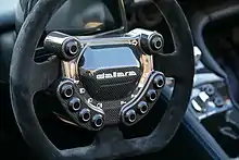 L'intérieur de la voiture est principalement en fibre de carbone et toutes les principales commandes de la voiture sont intégrées au volant. Les informations vitales de la voiture telles que la vitesse et le régime sont affichées sur un écran numérique, dans le style sport automobile, fixé sur la colonne de direction. Les sièges, non réglables, sont des coques en fibre de carbone fixées au châssis avec un rembourrage en mousse. La colonne de direction, les pédales et les palettes de vitesses sont réglables afin d'adapter la position de conduite. Un minimum de bagages peut être rangé dans deux compartiments situés derrière le moteur. Deux compartiments supplémentaires dans les sièges sont conçus pour ranger deux casques de course. L'espace total de ces compartiments est de 113 litres.