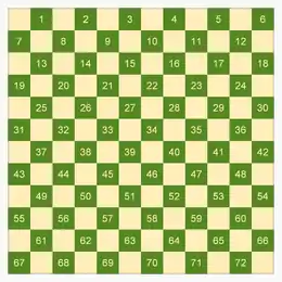 Chaque case du damier est numérotée, pour noter un coup on écrit le numéro de la case de départ du pion et celui de sa case d'arrivée, séparés d'un tiret d'il s'agit d'un déplacement simple et d'une croix s'il s'agit d'une prise.