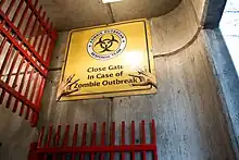 Le symbole biohazard se retrouve ainsi souvent associé aux zombies dans la culture visuelle populaire.