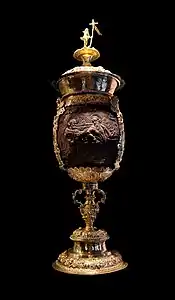 Présentée au Musée de l'Œuvre Notre-Dame, la pièce la plus remarquable est un hanap couvert, réalisé à partir d'une noix de coco, sculptée de trois bas-reliefs représentant un abbé de l'abbaye d'Ebersmunster, saint Pierre et saint Paul, l'archange saint Michel triomphant du démon[2].