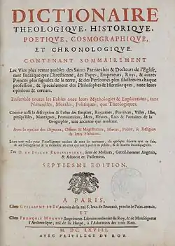 Les curieux de détails pourront recourir au Dictionnaire historique de Prosper Marchand (éd. La Haye, 1758, tome second, p. 287, article Torrentinus, note D[7].), où ils trouveront la liste chronologique des dictionnaires historiques, accompagnée de remarques pleines d'érudition.