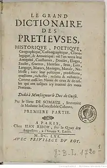 Détail curieux signalé par François Rey dans ses Éphémérides de 1660 à la date du [5], le titre de l'ouvrage de Juigné-Broissinière sera pastiché par Antoine Baudeau de Somaize dans son Grand Dictionnaire des précieuses, historique, poétique, géographique, cosmographique, chronologique et armoirique : où l’on verra leur antiquité, coutumes, devises, éloges, études, guerres, hérésies, jeux, lois, langage, mœurs, mariages, morale, noblesse ; avec leur politique, prédictions, questions, richesses, réduits et victoires ; comme aussi les noms de ceux et de celles qui ont jusques ici inventé des mots précieux[6].