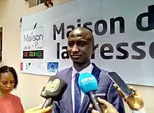 Daouda Bangoura à la maison de la presse de Guinée lors du lancement de son œuvre du village au palais