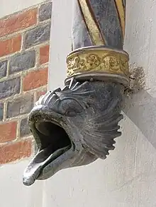 Actuellement, surtout en ville ou dans les bâtiments modernes, la plupart des tuyaux de descente pluviale ne sont plus munis d'un orifice coudé à leur base mais sont directement connectés à un tuyau d'évacuation horizontal relié au système d'égouttage. Le motif décoratif en forme de bouche de poisson crachant latéralement le jet d'eau dans un caniveau, ou à même le pavement, ayant disparu, la signification de ce terme s'est modifiée et son sens s'est un peu perdu. En architecture, il désigne par extension simplement le pied renforcé par un tuyau de fonte d'une descente de gouttière et aboutissant directement à un système enterré d'évacuation des eaux pluviales[2]. Le pied en fonte plus rigide et plus robuste que le tuyau en zinc de la descente protège celui-ci contre l'écrasement en cas de choc.