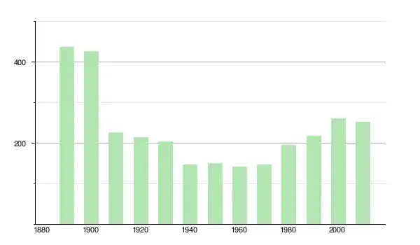 | 1930 | 205 | ▼ −4,21 % | |