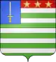 Burelé d'argent et de sinople; au chef de gueules, chargé de 3 étoiles d'or[14],[22]. |