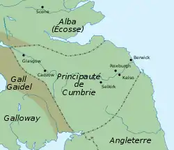 Le territoire en question est composé des comtés du Roxburghshire, du Selkirkshire, du Berwickshire, du Peeblesshire et du Lanarkshire. David se voit par ailleurs octroyer le titre de princeps Cumbrensis, « prince de Cumbria », comme l'attestent ses chartes de l'époque[26],[27]. Bien qu'elle représente une large partie de l'Écosse au sud de la Forth, la région de Galloway échappe entièrement à l'autorité de David[28].