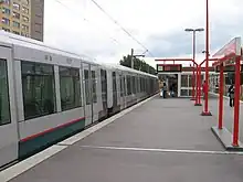 Peu à l'est de la station s'arrête la caténaire où l'alimentation électrique est reprise par un troisième rail.