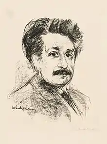 Einstein mentionne seulement cinq scientifiques dans l'article, soit Isaac Newton, James Clerk Maxwell, Heinrich Hertz, Christian Doppler et Hendrik Lorentz[109]. Il ne prend pas en compte la gravitation[110] ; elle sera introduite dans la relativité générale, théorie que le physicien élabore de 1907 à 1915[111] en collaboration avec les mathématiciens Marcel Grossmann, Tullio Levi-Civita et David Hilbert[112],[113].