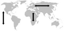 Enfin les déplacements de populations en Eurasie sont beaucoup plus aisés qu'entre l'Amérique du Nord et l'Amérique du Sud. En effet, après que l'Amérique Centrale a été occupée à la préhistoire, celle-ci a fait office de goulot d'étranglement par son étroitesse, empêchant ainsi la diffusion de techniques et d'idées d'un continent à l'autre.