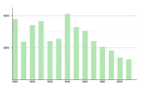 | 1950 | 3 288 | ▼ −19,8 % | |