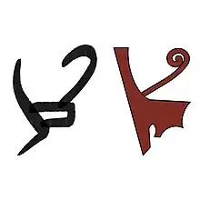 Ce caractère est utilisé comme unilitère dans un certain nombre de mots et de noms égyptiens. Il est également utilisé comme déterminatif, notamment pour la couronne Decheret: