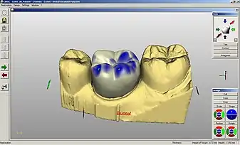 Après avoir pourri ou cassé, des parties de dent sont corrigées par le dentiste, une image (scan) est prise de la dent préparée et les dents voisines. Cette image, appelée impression numérique, dessine les données dans un ordinateur. Le logiciel propriétaire crée ensuite une pièce de rechange pour les zones de la dent, la création d'un virtual restauration. Cela s'appelle la rétro-ingénierie. Le logiciel envoie de données virtuel d'une machine de fraisage où la pièce de rechange est sculpté dans un bloc de céramique ou en résine composite. Les taches et les émaux sont licenciés à la surface de la tranchée de la céramique de la couronne ou d'un pont pour corriger le contraire monochromatique apparence de la restauration. La restauration est ensuite ajusté dans la bouche du patient et scellée ou collée en place.