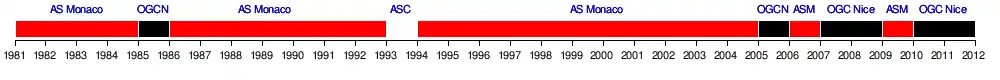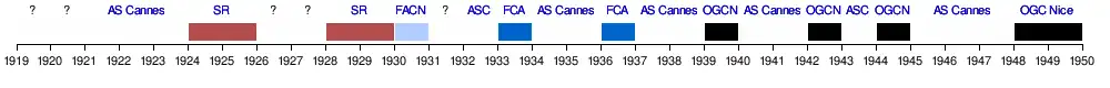 | OGC Nice | depuis 1932 | Le club perdit brièvement en 1934 son statut professionnel. |