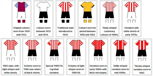 Ces couleurs ont toujours été portées par le club sauf entre 1956 et 1962. Le maillot change pour une couleur ambre portée sur un short noir. Depuis 1962, le maillot est resté le même. Seules les rayures ont changé de taille au cours des années.