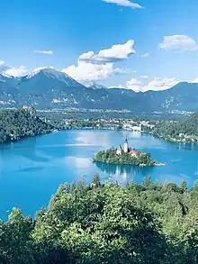 | 3 | 9 janvier 2024[17],[18] | Après s'être baignés au Cap Kamenjak au bord de la mer Adriatique, les passagers du X-Bus ont fait une rencontre inattendue : Salomé pourrait prochainement devenir une nouvelle candidate si elle réussit une épreuve. Elle connaîtra la situation du bus à cet instant. Lors d'un jeu de mémoire, les deux vainqueurs se voient proposer secrètement un alliance avec cette nouvelle rivale : s'ils l'aident à intégrer le jeu, elle partagera ses informations. Le lendemain, après avoir visité le village de Velika Planina dans lequel nos candidats ont pu traire une vache, c'est l'heure de l'épreuve. Salomé intègre le bus après avoir gagné une course contre le reste du groupe (toutefois aidée par ses deux complices ayant retardé leurs coéquipiers). Le retour se fait en téléphérique. Les candidats seront masqués, mais quatre peuvent garder la vision et tenter de découvrir des indices. Après une nuit de repos, nouveau jeu de rapidité entre une équipe en rafting sur le fleuve Isonzo et une autre équipe dans le bus devant associer des drapeaux avec leurs pays respectifs : les vainqueurs ont accès à la pièce panoramique dans laquelle, devant l'église Sainte-Marguerite de Bohinjska Bela et son monument aux morts de la Première Guerre mondiale, ils auront 30 secondes pour se localiser avec l'aide téléphonique d'un expert en géolocalisation. C'est finalement au lac de Bled que Julie est éliminée lors de cette troisième épisode. | ![]() Le lac de Bled. |