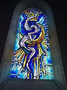 Les cartons des vitraux supérieurs de la grande nef sont d'André-Louis Pierre (1905-1964) et exécutés entre 1955 et 1957 dans les ateliers d'Issoudun. Le même maquettiste a réalisé les cartons des chapelles de Saint Joseph et de Saint Jean. Les cartons des vitraux des bas-côtés sont dus exclusivement à Robert Tillier et sont exécutés entre 1968 et 1969. Ils sont en dalles de verre de 2 cm d'épaisseur enchâssées dans une armature en acier inoxydable, selon un procédé unique au monde, mis au point par les ateliers Dettviller et Tillier[2].
