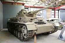 Panzer IV peint aux couleurs du désert avec le logo de l'Afrikakorps au musée allemand des Blindés de Munster.