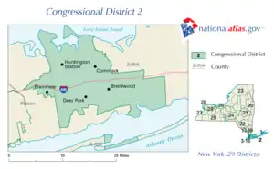 De 2003 à 2013, il comprenait toute la ville de Huntington et certaines parties des villes de Babylon, Islip et Smithtown dans le Comté de Suffolk ainsi qu'une partie de la ville d'Oyster Bay dans le Comté de Nassau. Il comprenait des communautés telles que Bay Shore, Brentwood, Central Islip, Commack, Deer Park, Dix Hills, Huntington, Melville, North Amityville, Northport, Oakdale, Plainview, Ronkonkoma, Sayville et Wyandanch. Une grande partie de cette zone constitue désormais le 3e district, tandis que la majeure partie du territoire actuellement dans le 2e district était située dans le 3e district.