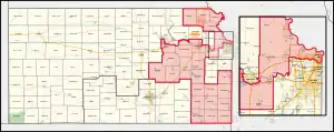 La redistribution en 2022 a déplacé l'intégralité de Lawrence dans le 1er district. Les limites du district ont également été modifiées pour déplacer les comtés d'Anderson et de Franklin et des parties du Comté de Miami vers le 3e district. L'intégralité du Comté de Miami se trouve désormais dans le 3e district. La plupart du Comté de Jackson, tout celui de Jefferson et la partie restante des comtés de Marshall ont déménagé dans le 1er district. Les comtés de Chase, Geary, Lyon, Marion, Morris et Wabaunsee sont tous sortis du 1er district.