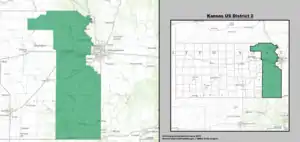 Le 2e district congressionnel du Kansas est un district de l'État américain du Kansas qui couvre la majeure partie de la partie orientale de l'État, à l'exception du cœur de la région métropolitaine de Kansas City. Le district englobe moins d'un quart de l'État. La capitale de l'État de Topeka, les villes d'Emporia, Junction City et Leavenworth et la majeure partie de Kansas City sont situées dans ce district. Le district est actuellement représenté par le Républicain Jake LaTurner.