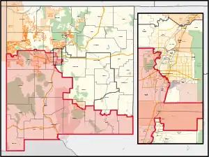 Historiquement, le district a une tendance plus républicaine que les deux autres districts du Nouveau-Mexique, en particulier lors des élections présidentielles. Lors des élections de 2020, la candidate républicaine Yvette Herrell a battu la Représentant Démocrate Xochitl Torres Small lors d'une revanche de leur course en 2018. Herrell est la troisième femme autochtone élue au Congrès et elle a pris ses fonctions le 3 janvier 2021. À la suite du recensement de 2020, chaque membre de l'État a subi un redécoupage « pour garantir que chaque district ait une variété d'électeurs reflétant mieux la diversité des intérêts du Nouveau-Mexique dans son ensemble[1]. » Ce district est devenu beaucoup plus démocrate, car il a gagné davantage d'Albuquerque tout en perdant. certaines zones fortement républicaines dans la partie orientale de l'État. Avec une marge serrée, le challenger démocrate Gabe Vasquez a remporté les élections de mi-mandat de 2022[2]. Néanmoins, avec un indice CPVI de D+1, c'est le district le moins démocrate du Nouveau-Mexique, un État doté d'une délégation entièrement Démocrate au Congrès[3].