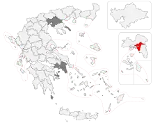 - Athènes B3 (el) : Athènes-Sud et une partie d'Athènes-Centre : Dafni-Ymittos, Héliopolis, Kaisariani, Vyronas et Zografou.