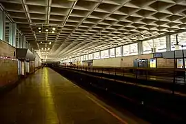 Située en surface dans un bâtiment couvert, la station dispose de deux quai latéraux en correspondance directe avec deux quais latéraux de la gare ferroviaire. Deux passages souterrains piétonniers disposent de bouches dans les rues parallèles aux voies[3].